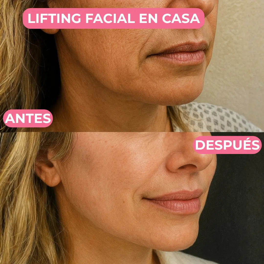 Consiste en la aplicación de suaves ondas de energía en la piel que hacen que los músculos de tu cara se contraigan y luego crezcan más fuertes. Es como llevar tu cara al gimnasio, ¡y solo te toma 5 minutos al día!