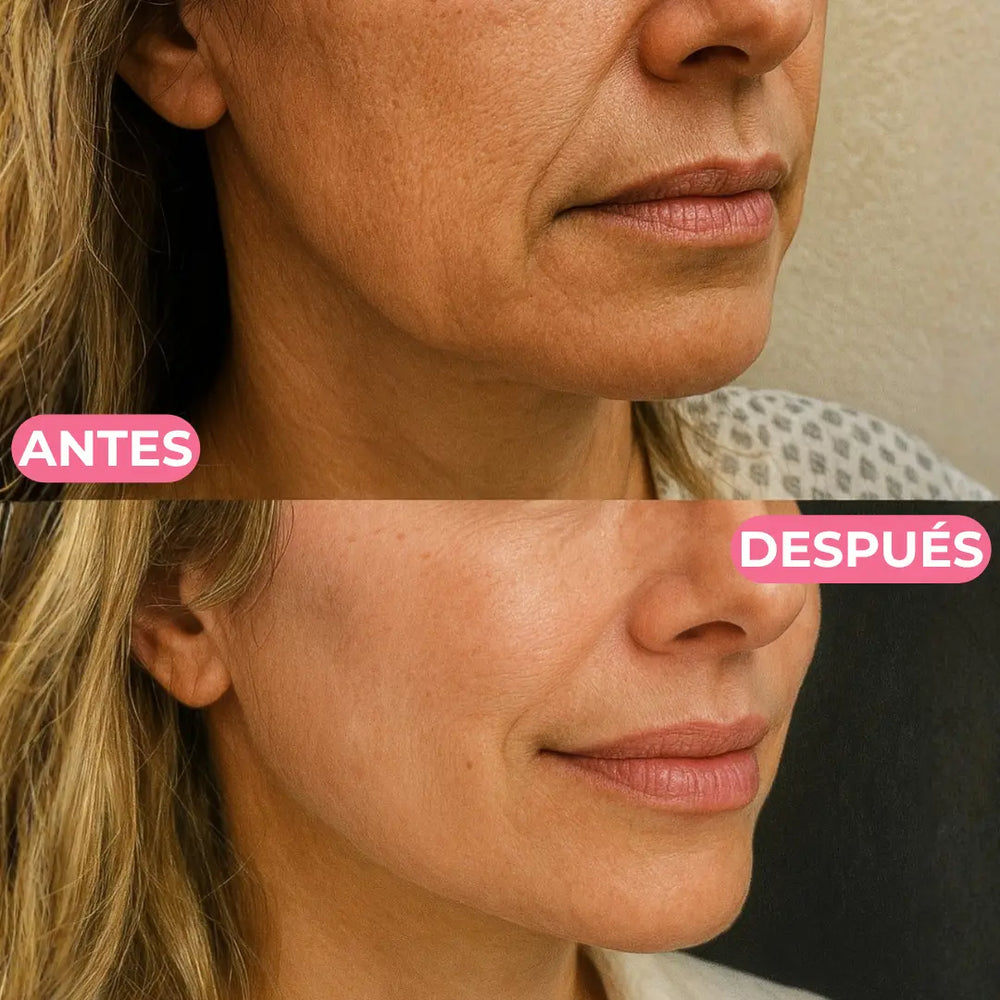 Después de varias semanas, la piel se ve más firme, suave y radiante, con una reducción en la apariencia de arrugas y líneas de expresión.